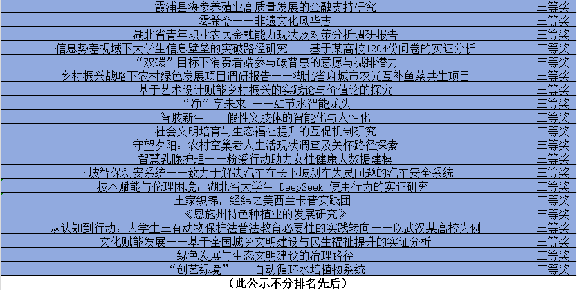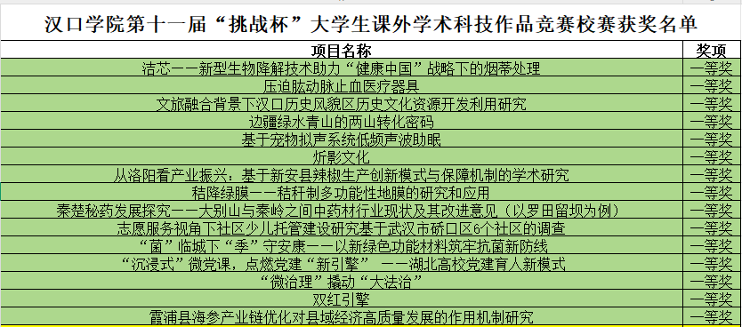 下面为校赛获奖项目名单(排名不分先后)