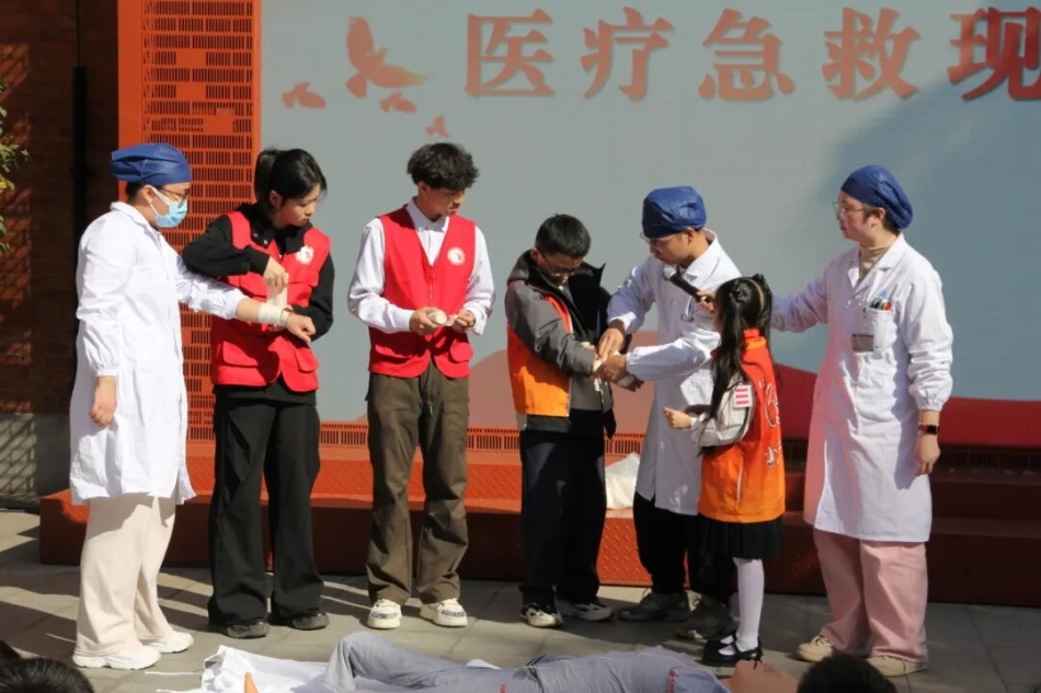活动中,华中科技大学同济医学院附属协和医院急救团队带来医疗急救现场演示和培训,为“61号”志愿红们传授实用急救技能,助力志愿服务更专业。