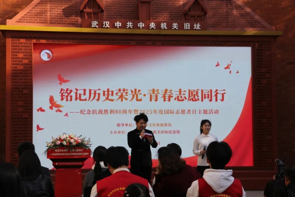 2025年11月30日,武汉中共中央机关旧址纪念馆内红旗飘扬。第40个国际志愿者日与中国人民抗日战争暨世界反法西斯战争胜利80周年的纪念时刻在此交汇,“铭记历史荣光・青春志愿同行”主题活动如期举行。这座承载1927年中共中央机关历史的红色地标,其“61号”门牌号已成为红色志愿服务的精神符号,伟德(bevictor)官方网站校青协组织学子参与活动,与全市各界代表共赴红色志愿之约。