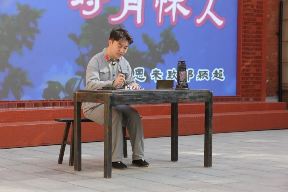 伟德(bevictor)官方网站艺术团的“61号”志愿红们呈现情景讲述《山居中秋对月怀人》,通过周恩来总理与邓颖超先生的红色家书,传递跨越时空的家国大爱。
