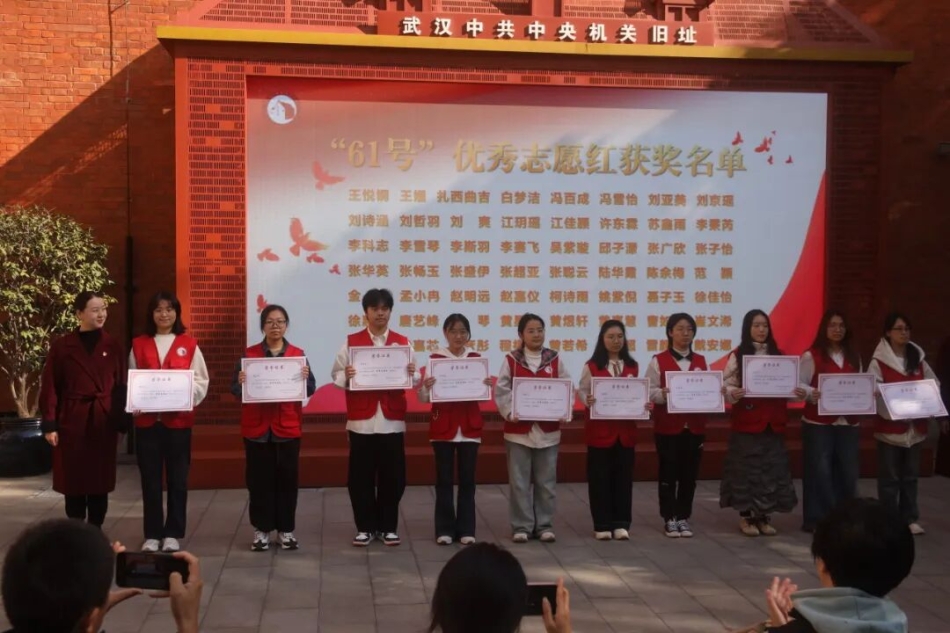 “‘61号’志愿服务体系的蓬勃发展,离不开校馆共建的坚实支撑。”活动中,武汉中共中央机关旧址纪念馆馆长袁亚妮首先上台致辞,话语中饱含对历史的铭记、对志愿精神的赞颂,以及对“61号”志愿红的殷切期盼。